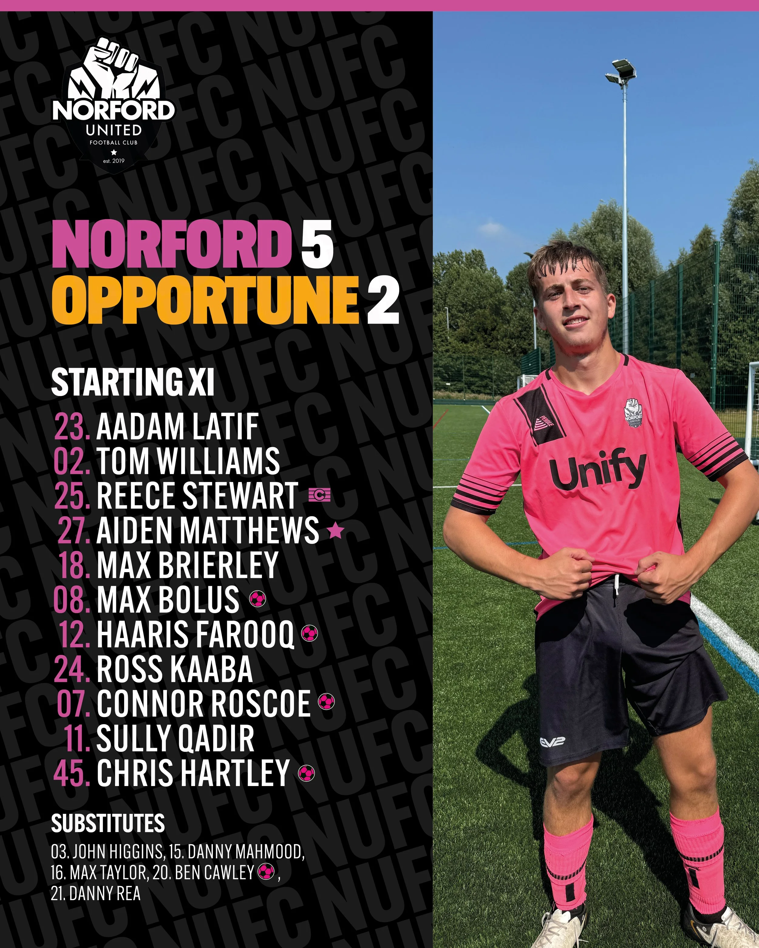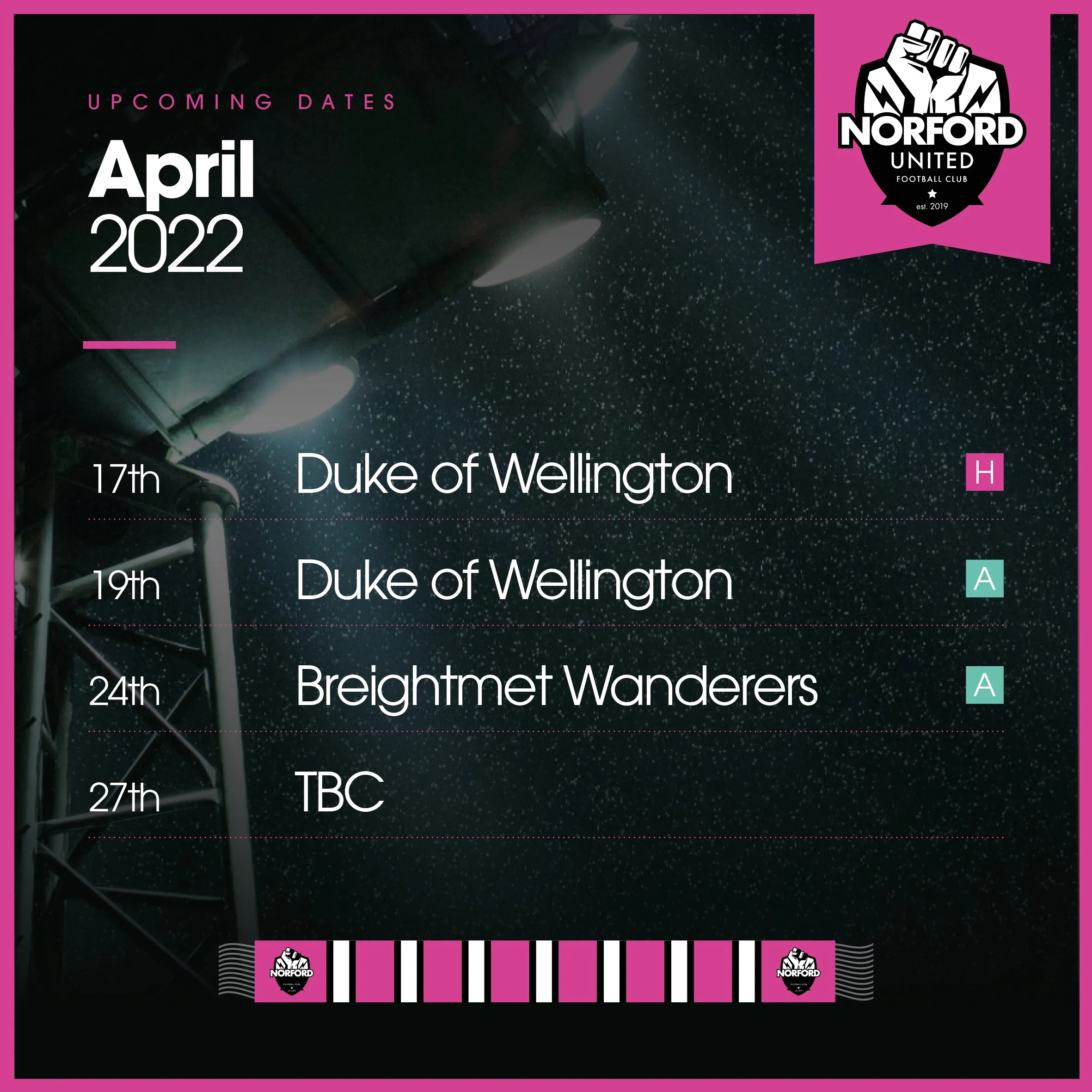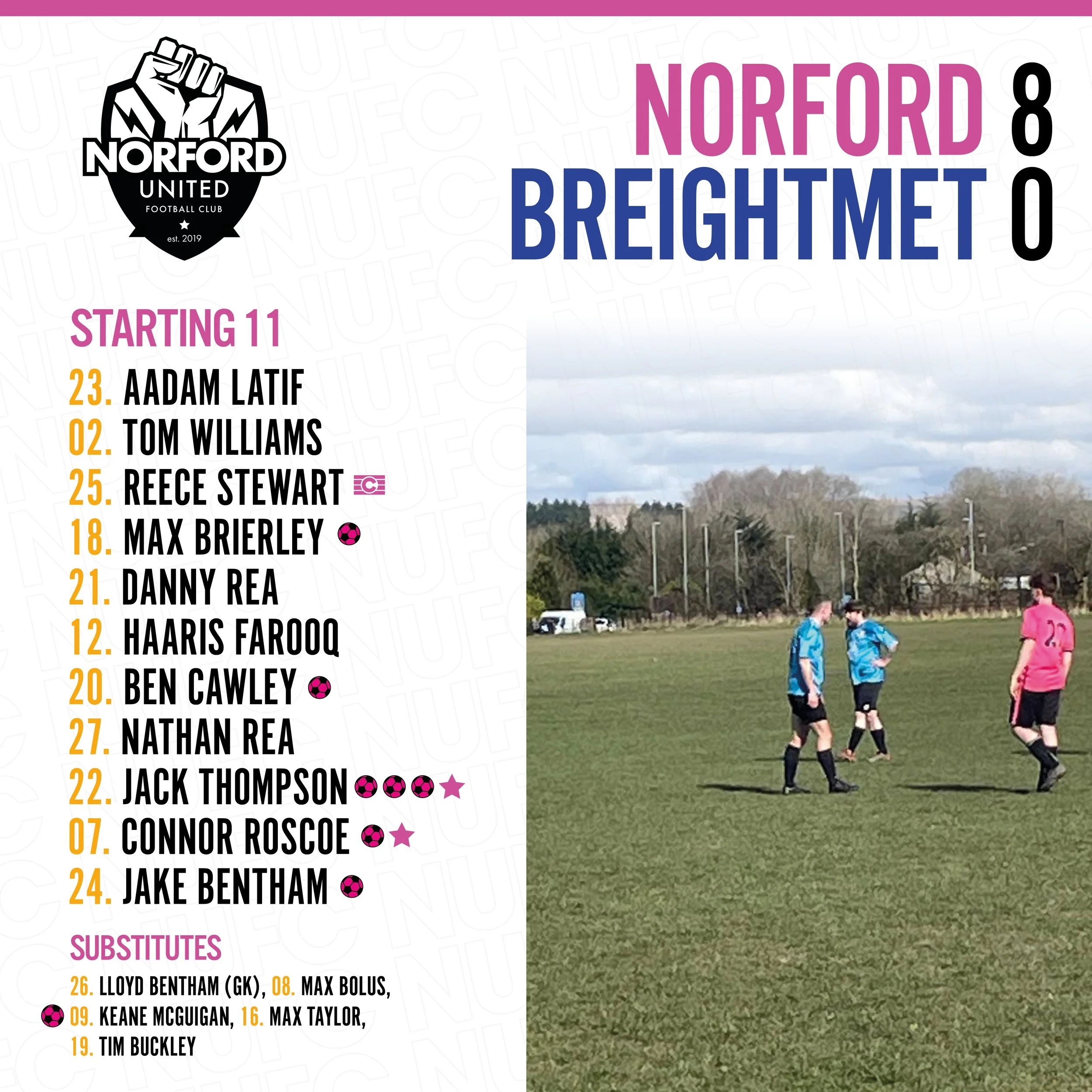 Ongoing social management for Norford United; covering results, fixtures, and updates across platforms to engage the club’s players and followers. A long-term, volunteer-led passion project.